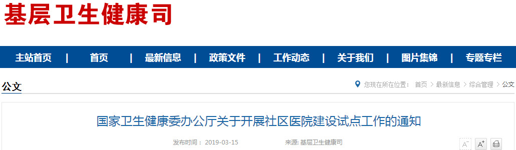 3月15日,國家衛(wèi)健委發(fā)布《關于開展社區(qū)醫(yī)院建設試點工作的通知》,明確要開展社區(qū)醫(yī)院建設試點工作,大批社區(qū)衛(wèi)生服務中心要升級成醫(yī)院!