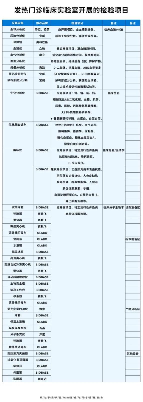 發熱門診實驗室是國家應對突發疫情的防控基建,其所承擔的職能主要是應對突發傳染病,因此在檢驗項目和設備的選擇上將有所側重。