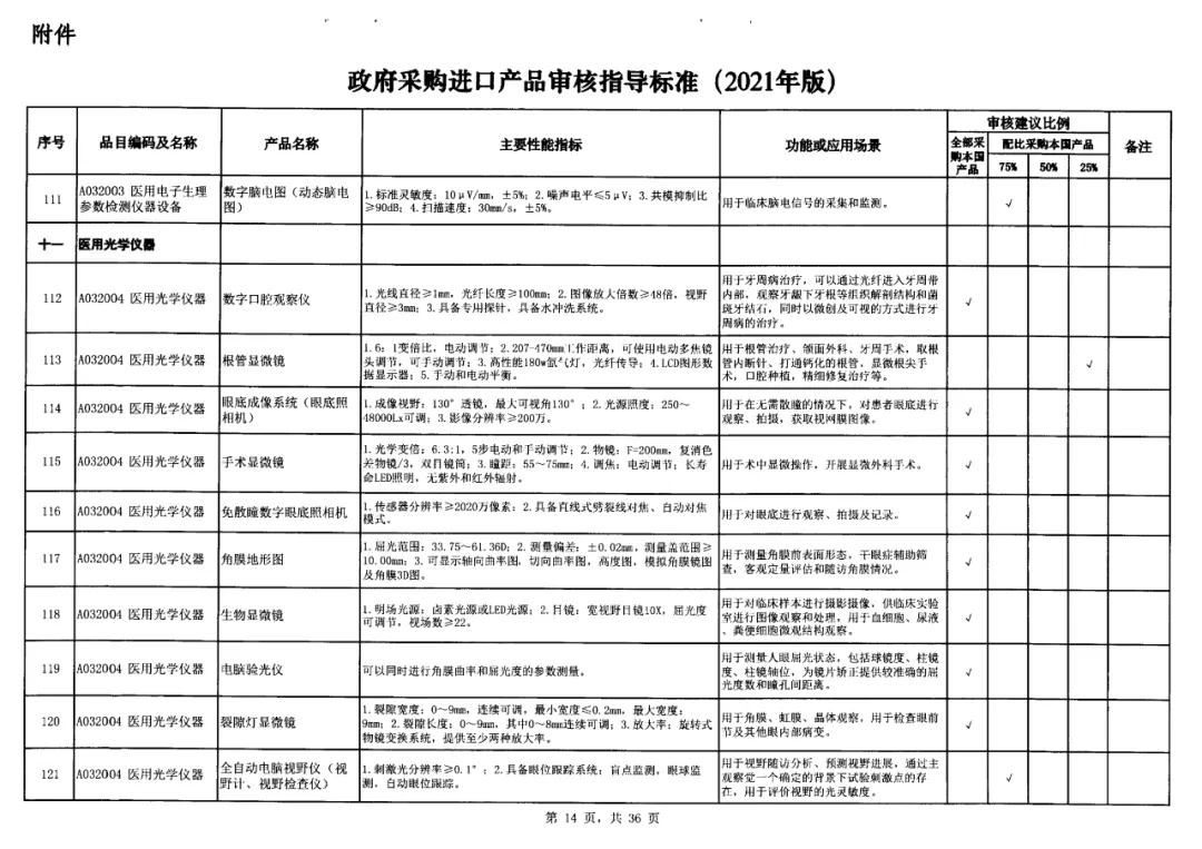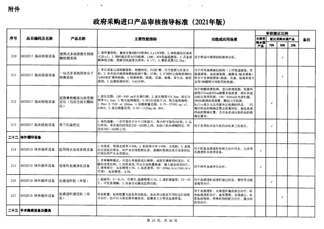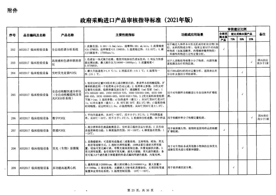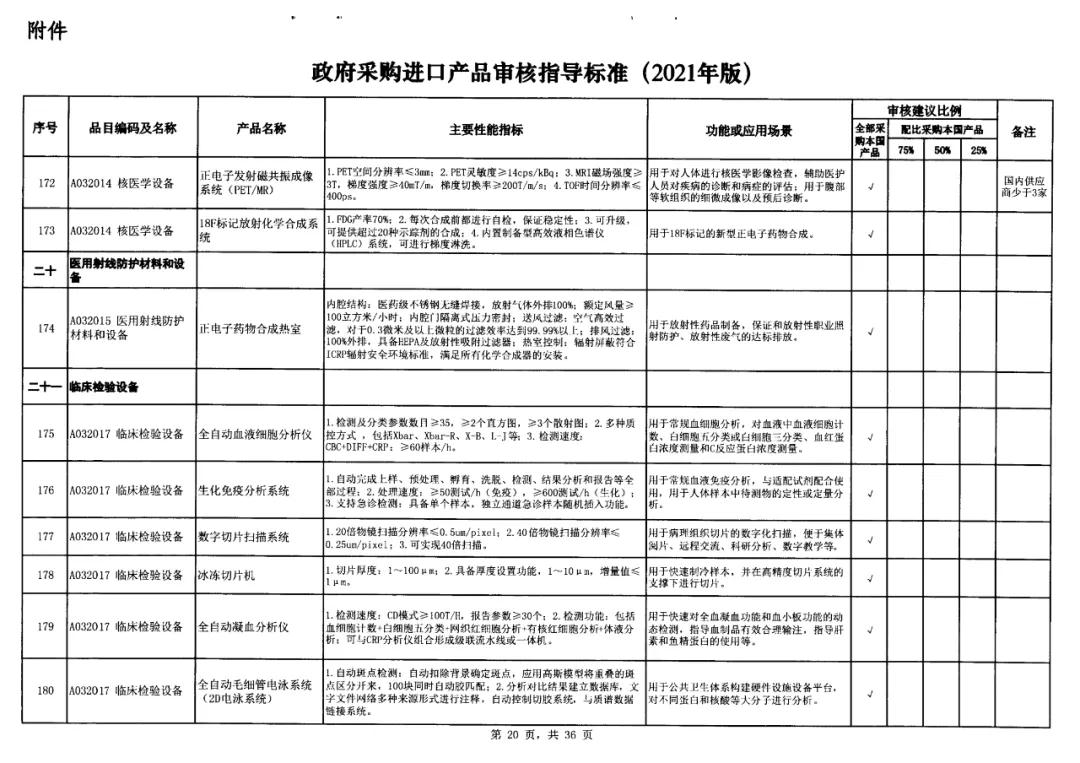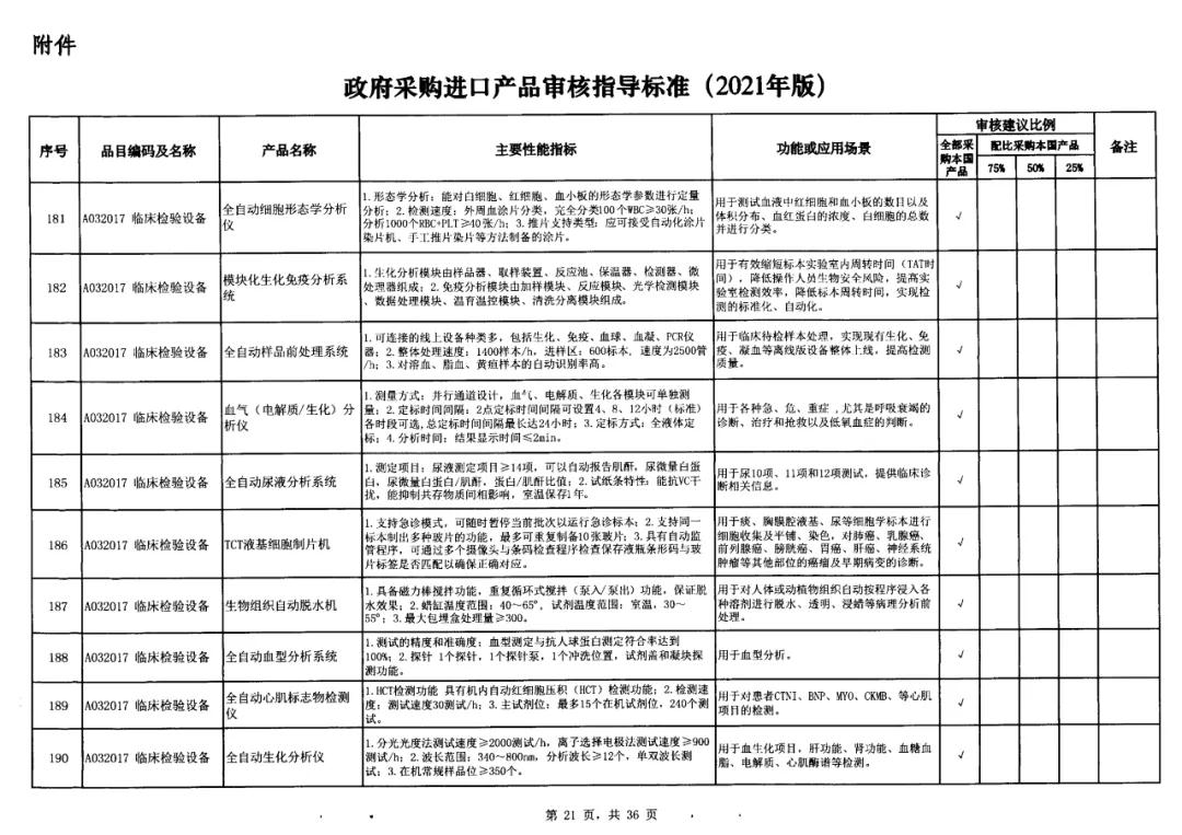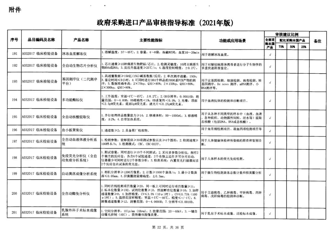 近日,國家財政部及工信部聯(lián)合發(fā)布的《政府采購進口產(chǎn)品審核指導(dǎo)標(biāo)準(zhǔn)》(2021年版)的通知流出,這份通知明確規(guī)定了政府機構(gòu)(事業(yè)單位)采購國產(chǎn)醫(yī)療器械及儀器的比例要求。涉及大部分常規(guī)檢驗設(shè)備,要求全部用國產(chǎn)。
