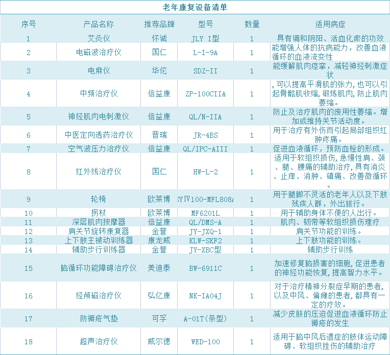 我們不得不承認(rèn)的是老年人的自身抵抗力和痊愈能力確實(shí)大不如前,做好預(yù)防工作很關(guān)鍵,對于已患疾病積極采取治療,配合康復(fù)措施同樣重要。今天我們就總結(jié)了一些老年療養(yǎng)康復(fù)的設(shè)備清單,來看看對你有沒有幫助吧!