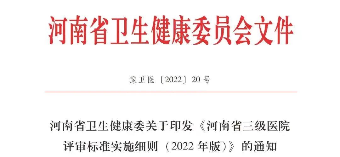 近日,河南省衛(wèi)生健康委印發(fā)《河南省三級醫(yī)院評審標(biāo)準(zhǔn)實施細則(2022 年版)》(以下簡稱《實施細則》),以進一步提高醫(yī)院分級管理的科學(xué)化、規(guī)范化、標(biāo)準(zhǔn)化和精益化水平。