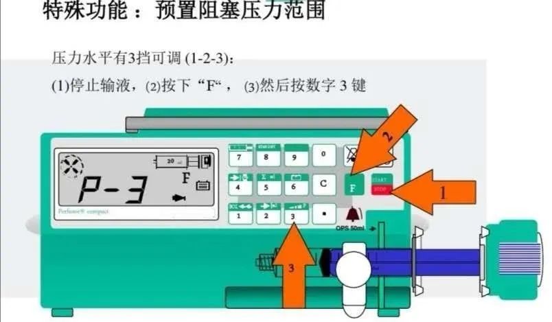 一種注射泵有不同的阻塞壓力檔位,不同檔位有不同的阻塞報警壓力值,它直接關系到流速的設定值。