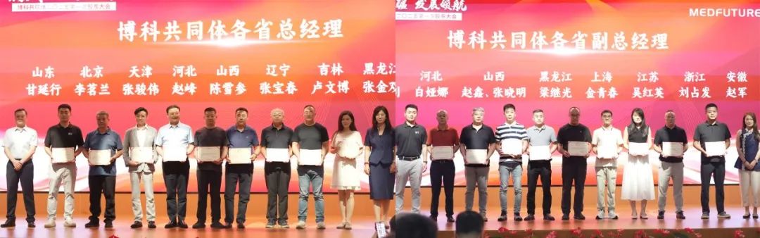 博科集團董事長甘宜梧先生登臺致辭,以“共商、共建、共治、共贏、共享、共生”理念為綱,號召全體成員以“王者之盟”的格局,攜手沖刺“全球最大醫療器械企業”目標,鏗鏘誓言,點燃了全場共創未來的豪情。