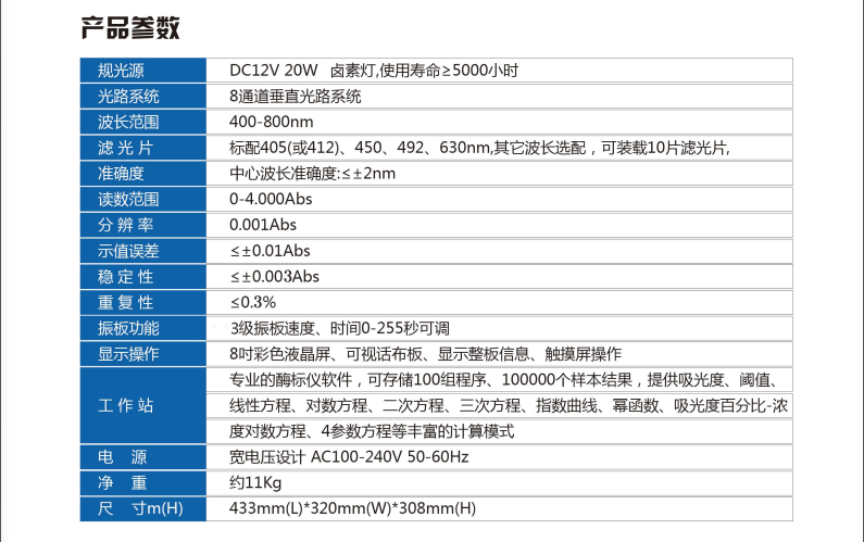 ◇ 終點法、兩點法、動力學,單/雙波長測試模式。