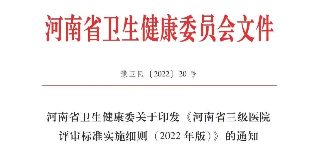 近日,河南省衛(wèi)生健康委印發(fā)《河南省三級(jí)醫(yī)院評(píng)審標(biāo)準(zhǔn)實(shí)施細(xì)則(2022 年版)》(以下簡(jiǎn)稱(chēng)《實(shí)施細(xì)則》),以進(jìn)一步提高醫(yī)院分級(jí)管理的科學(xué)化、規(guī)范化、標(biāo)準(zhǔn)化和精益化水平。本細(xì)則是省衛(wèi)生健康委依據(jù)國(guó)家衛(wèi)生健康委《三級(jí)醫(yī)院評(píng)審標(biāo)準(zhǔn)(2020 年版)》和《三級(jí)醫(yī)院評(píng)審標(biāo)準(zhǔn)(2020…