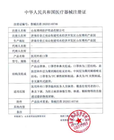 所屬類目:Ⅱ類 14-注輸、護理和防護器械 批準文號:魯械注準20202140746